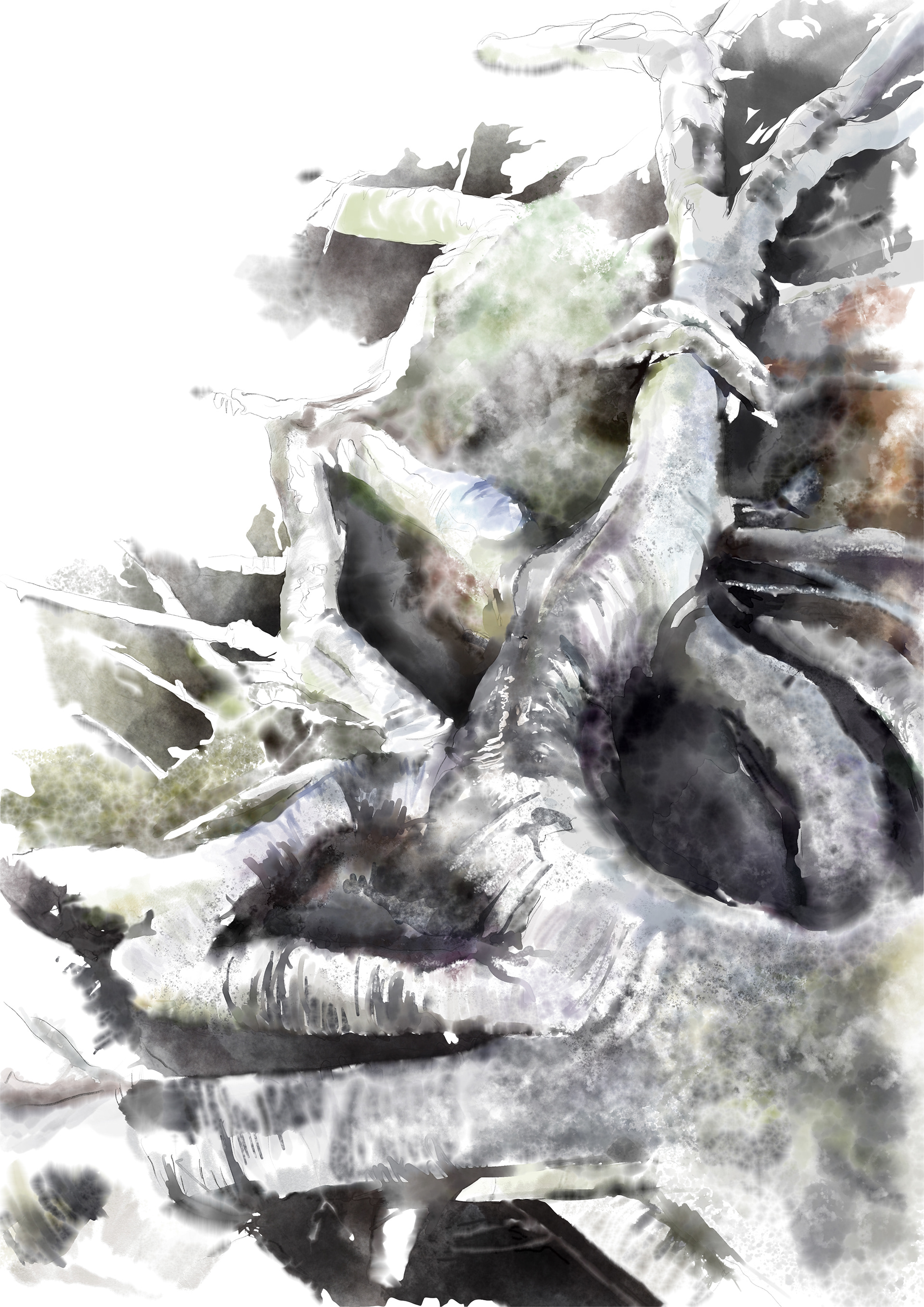 Root study 2 with live watercolor brushes in Adobe Fresco - special thanks to Eric Lenoir for the photo this was based off.